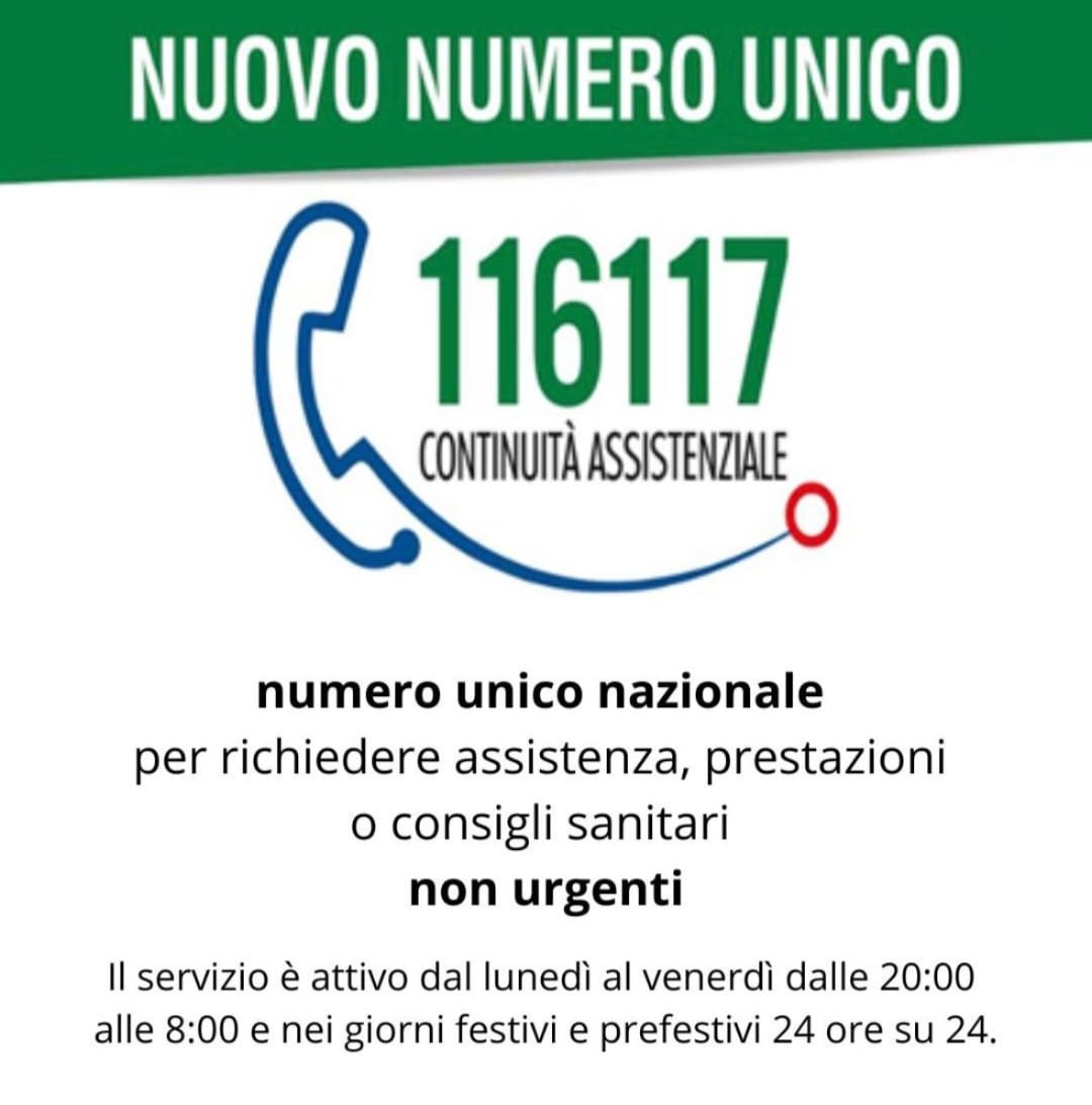 Nuovo numero unico nazionale per richiedere assistenza, prestazioni o consigli sanitari non urgenti: 116117